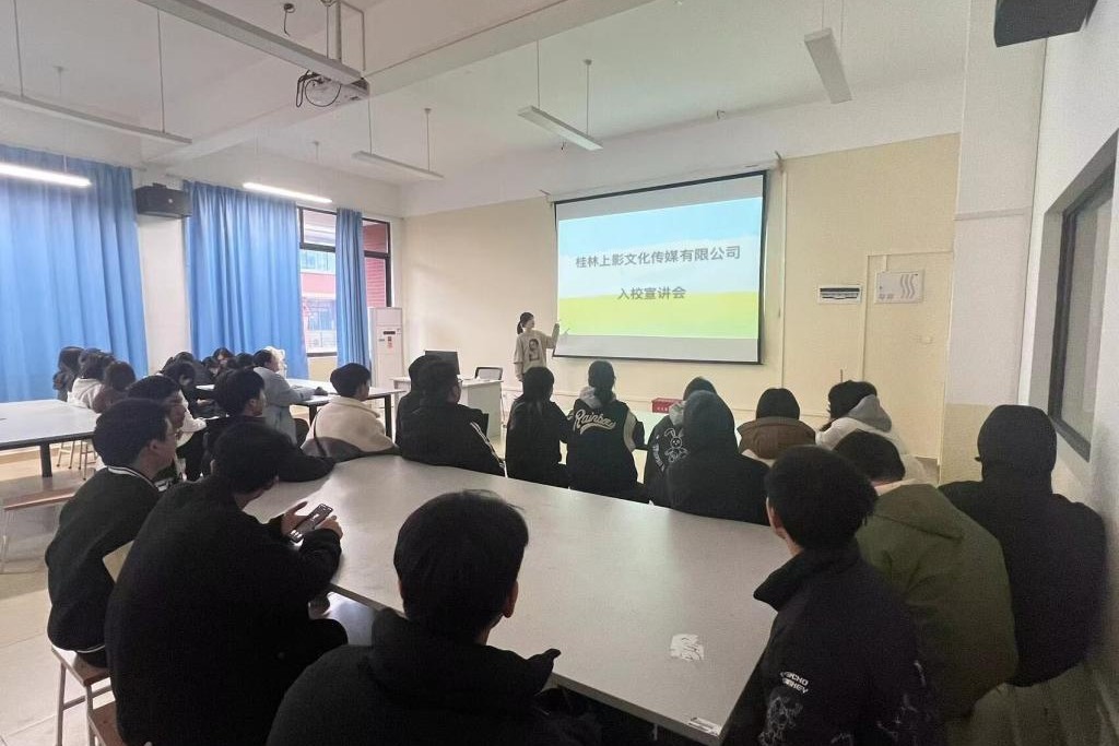 近日,桂林上影文化传媒有限公司莅临必赢官网,于创意设计学院E413教室举行了一场精彩的招聘宣讲会,动画、数字媒体艺术学生参加了本次宣讲会。此次宣讲会旨在加深我院师生对桂林上影文化传媒有限公司的了解,为即将步入社会的毕业生提供优质的就业选择,同时也为企业选拔优秀人才搭建了一个良好的平台。