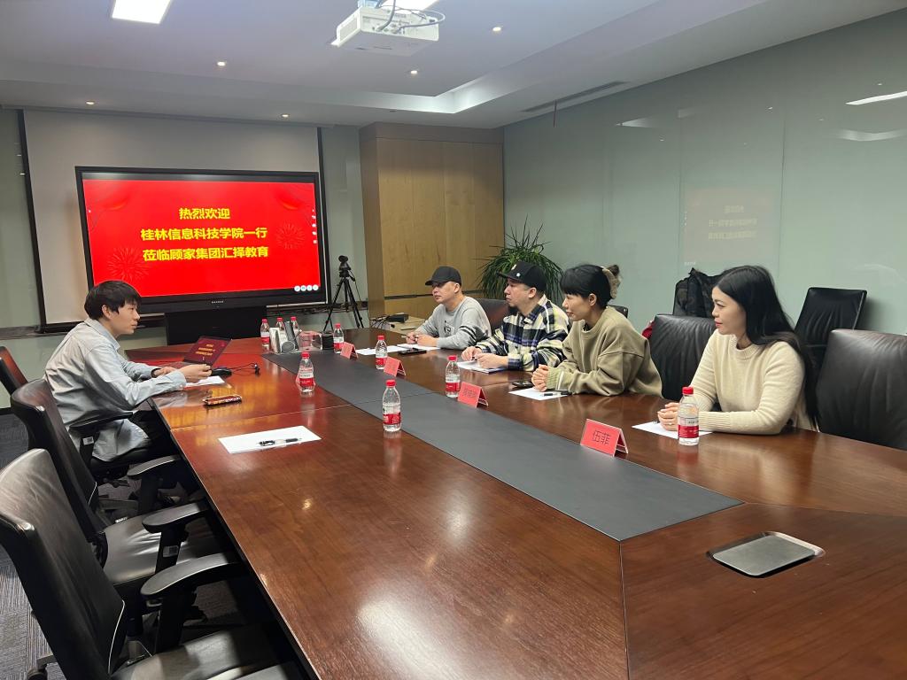 汇泽教育主管张经理热情接待并安排参观企业。张经理介绍了顾家集团有限公司发展历程、现有项目及企业未来规划等,双方就人才培养、学生实习实训、教师实践、课题体系与教学标准开发、教学与培训资源建设等方面进行深入讨论。黄晓瑜院长表示,双方合作在产学研、人才培养、产业学院建设等方面会有广阔的发展前景。