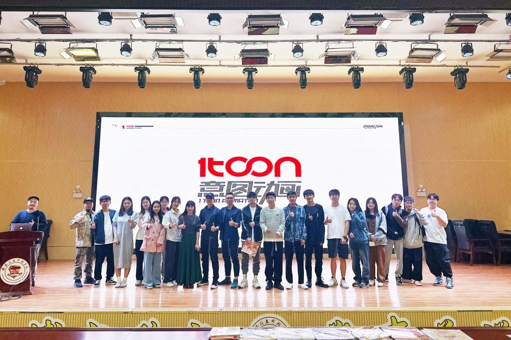 会上,南宁意图动画设计有限公司负责人覃诚总经理首先就公司概况、主营业务、服务客户、岗位需求、企业员工培养模式、公司福利待遇等内容向大家行了介绍。然后,覃总经理详分享了该公司制作的项目案例,旨在生动直观地让同学们了解行业标准。最后,谭凌霄副总经理与现场同学进行了简短的交流,针对同学们对职业发展、晋升道路提出疑问,谭副总经理给予详细的回答并给出建议,并强调了“专业、职业、敬业”在工作中的重要性。