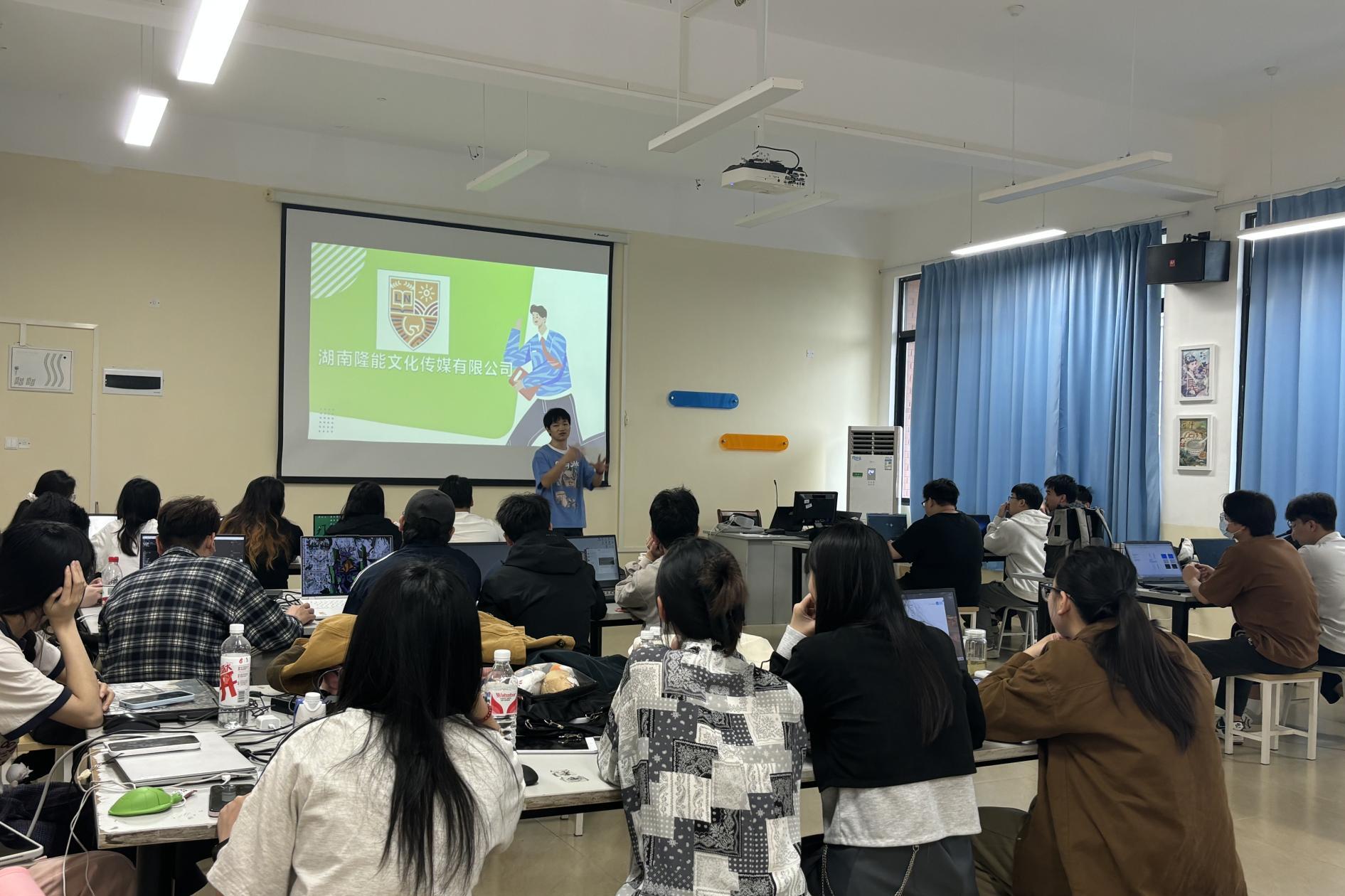为深化校企合作,推动产教融合,创意设计学院数字媒体艺术专业与湖南隆能文化传媒有限公司于5月13日下午,联合举办校企合作“3+1”人才培养项目宣讲会。本次宣讲会面向数字媒体艺术专业2022级学生,旨在为学生提供“理论学习+企业实践”的一体化成长平台,助力培养高素质应用型人才。
