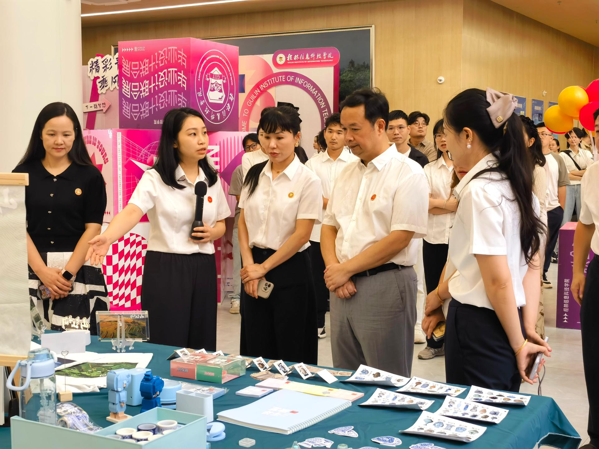本次联展汇聚创意设计学院、信息工程学院、机电工程学院等数个学院,涵盖智能装备、交互媒体、乡村振兴、文创生活等多种主题,集中呈现必赢官网“新工科+新文科”融合育人成果。展品中既有能自动识别谷物湿度的手持收割机器人,也有基于桂林非遗IP的沉浸式数字剧本,现场师生直呼脑洞大开。
