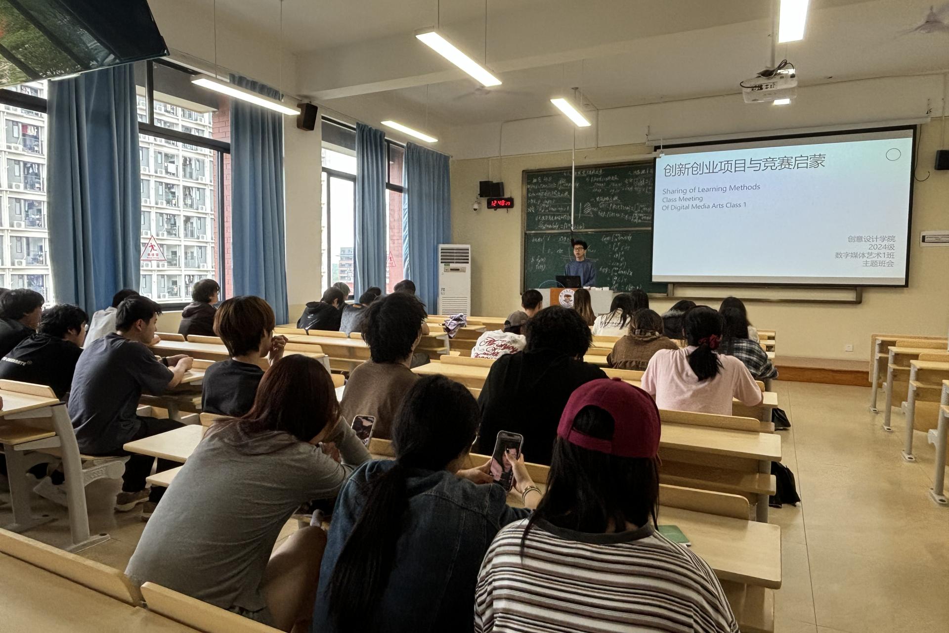 为激发学生创新创业意识,助力学科竞赛能力提升,2024级数字媒体艺术1班于5月26日在C312教室开展“创新创业项目与竞赛启蒙”主题班会。本次班会由班主任黄增扩老师主持,全班同学围绕创新创业实践展开深度交流。