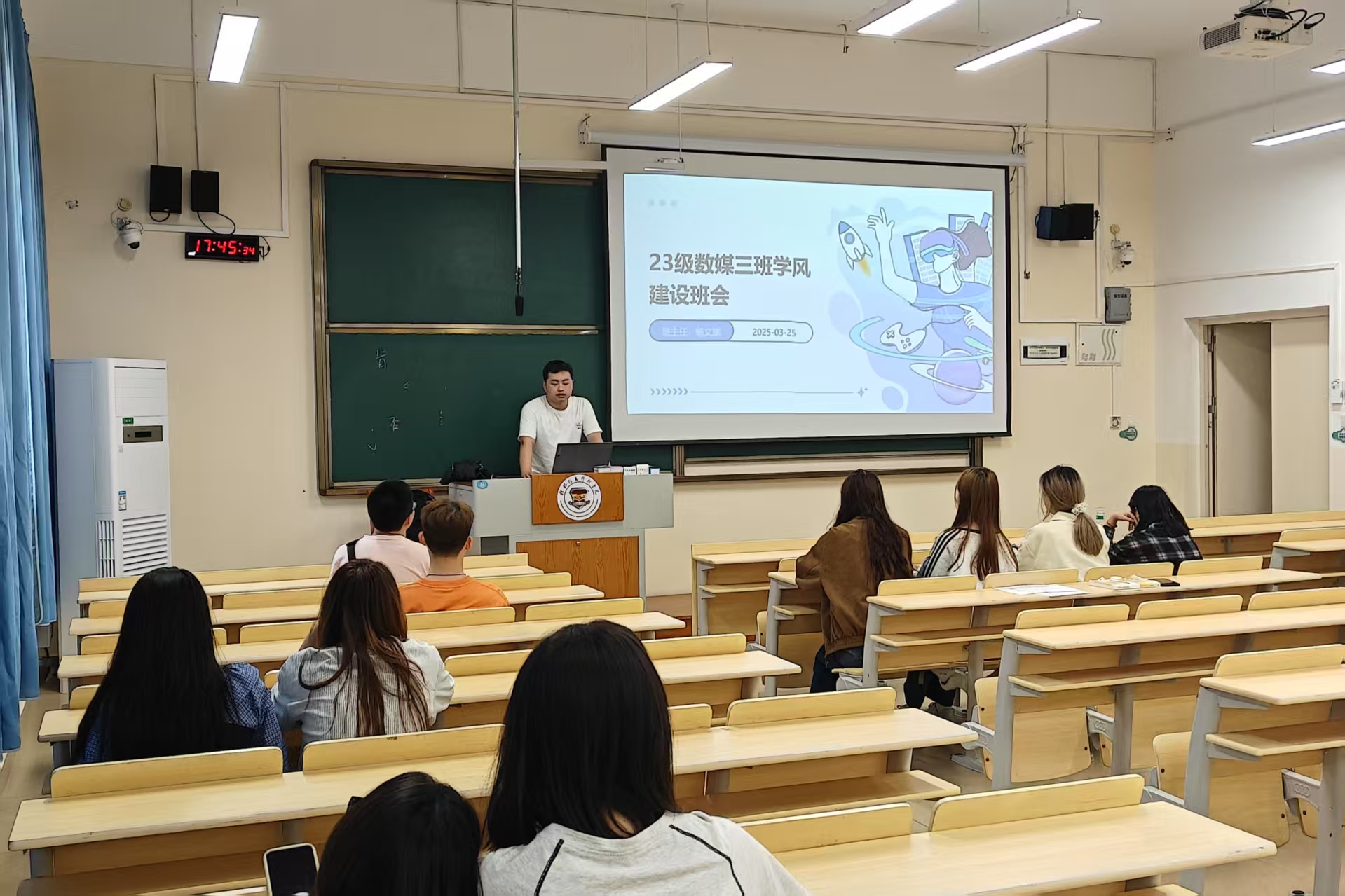 3月27日,2023级数字媒体艺术3班在德远楼E406教室召开“树优良学风,创美好未来”学风建设主题班会。本次班会由班主任杨文斌老师与全体同学共同完成,旨在引导同学们树立正确学习态度,明确目标,营造积极向上的班级学风。