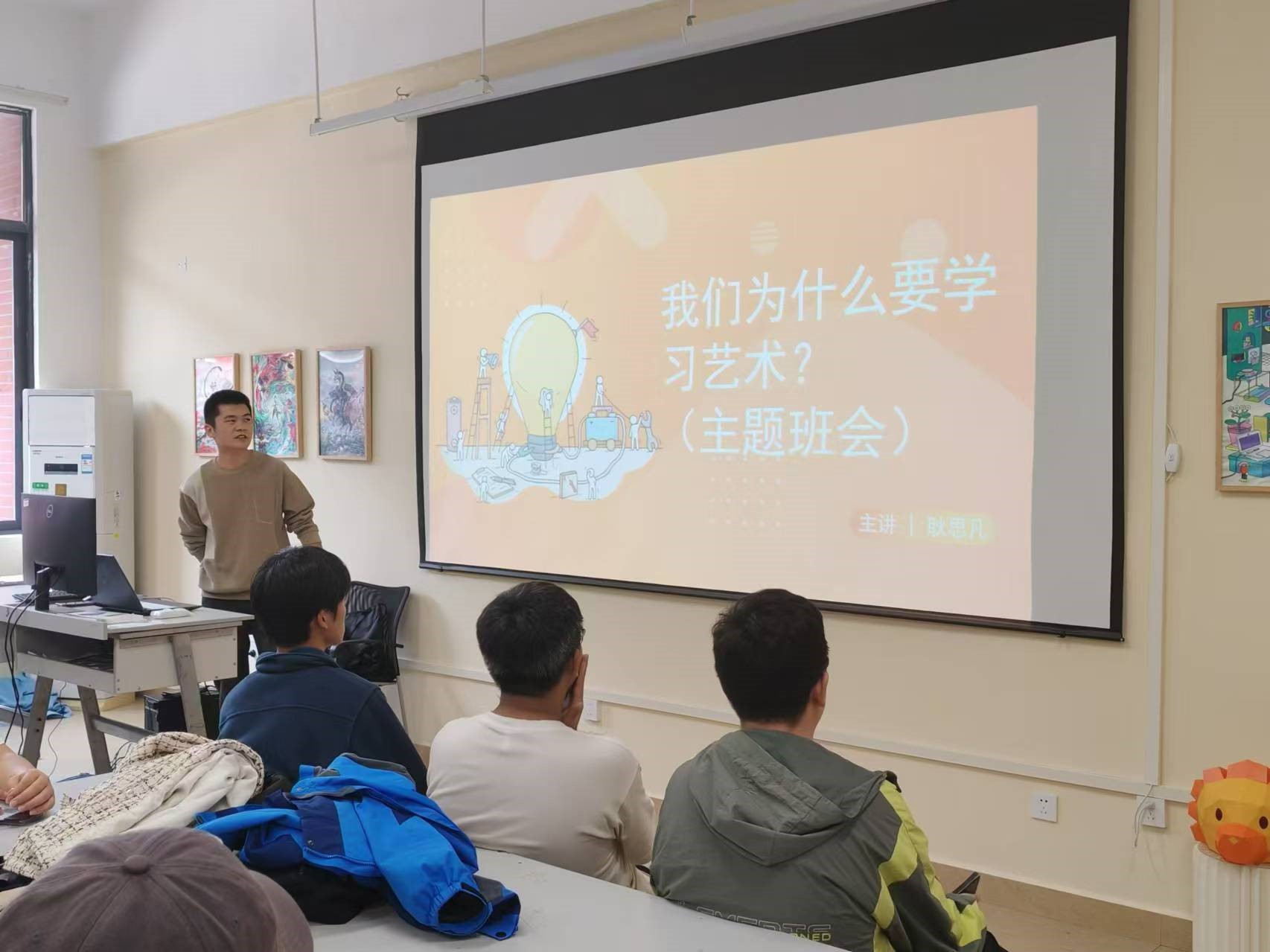 为了激发同学们对专业学习的热情,并扩展他们的知识视野,2024级视觉传达设计1班于2024年10月31日举办了一场主题为“我们为什么要学习艺术”的班会。