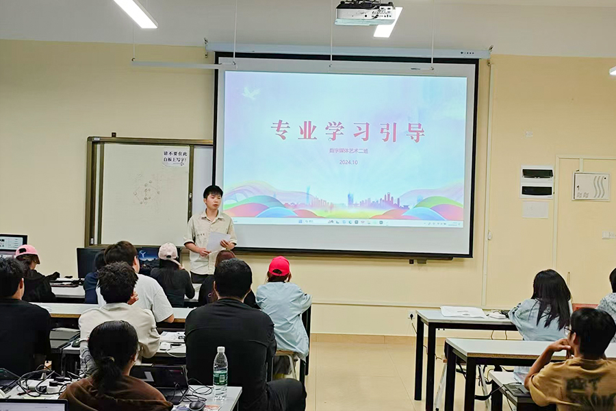 数字媒体艺术的职业规划与就业前景,李老师分析了数字媒体艺术专业的就业前景,包括行业岗位、薪资水平、职业发展路径、单位类型等。李老师分享了此前他在国家级媒体以及传媒公司工作的职业经历和经验,为学生提供了宝贵的职业规划建议。班会还设置了问答环节,学生就专业相关问题进行提问,李老师耐心解答,现场气氛热烈。