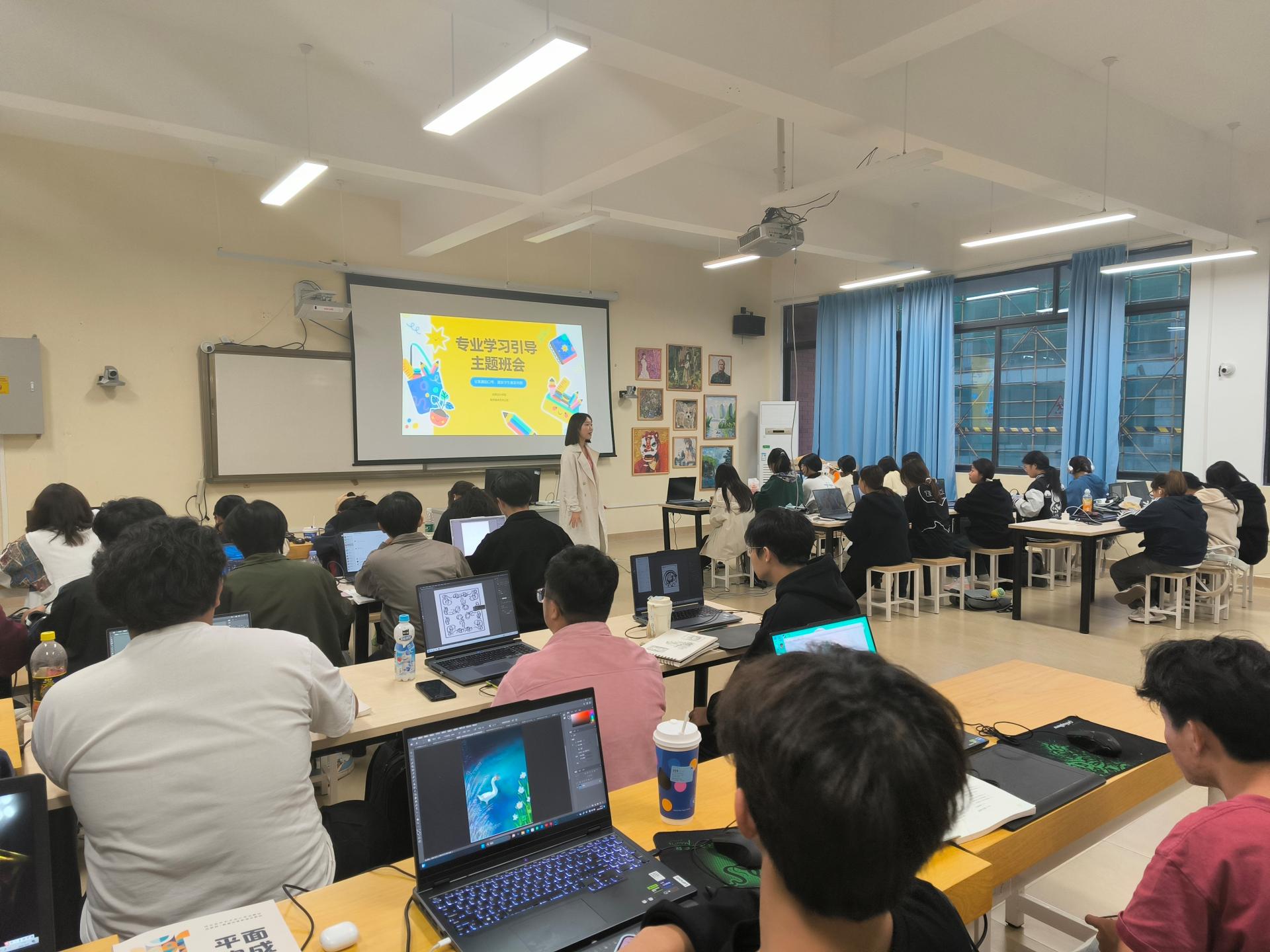 10月23日下午,2024级数字媒体艺术专业三班在创意设计学院E417教室举办了以“专业学习引导”为主题的主题班会。本次班会旨在帮助同学们更好地了解专业课程设置、学习方法和职业规划,激发大家的学习热情和创新意识。班主任张菁芮和全体同学参加了此次班会。