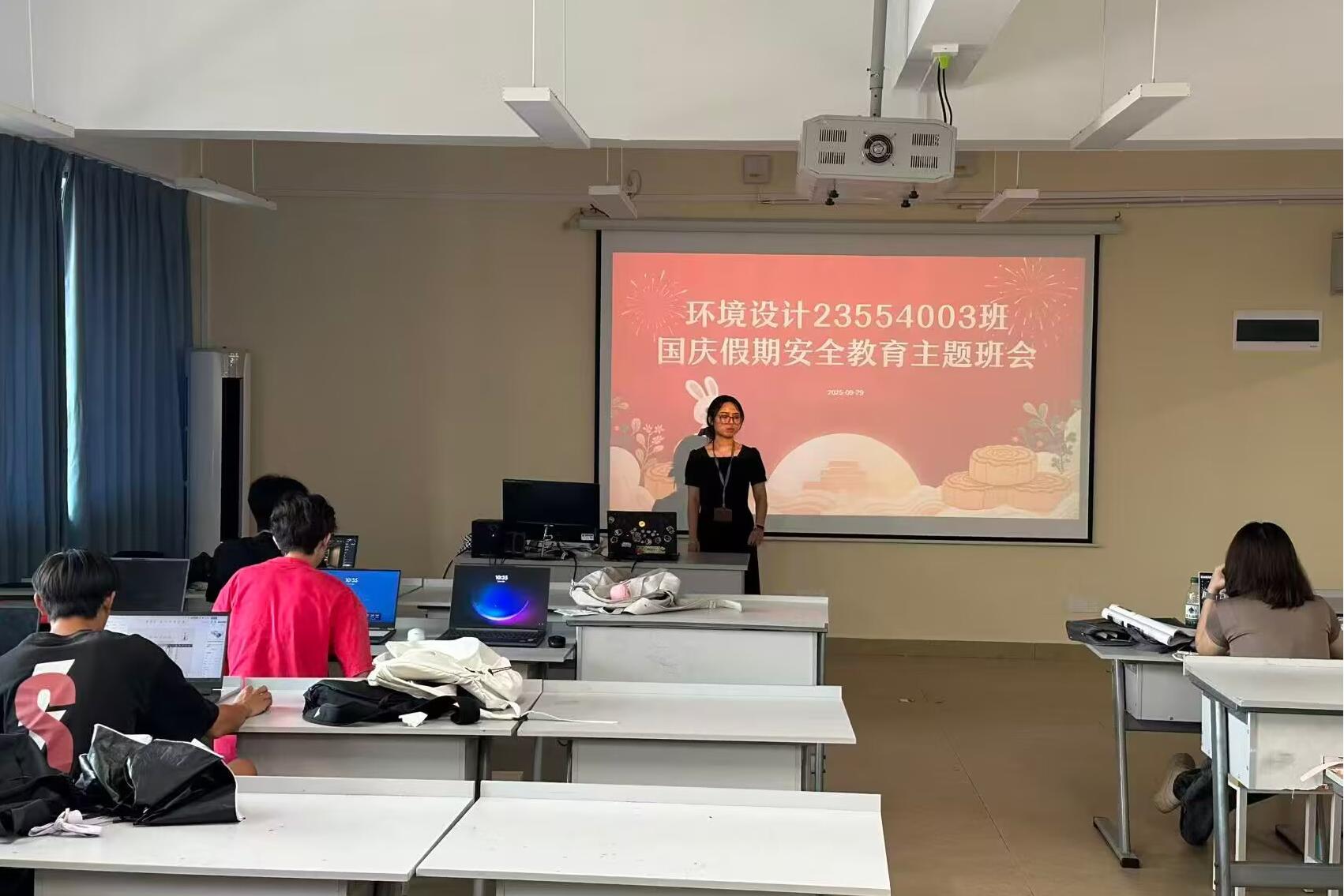 为保障学生度过平安祥和的国庆假期,班主任王程怡老师于9月29日在G210组织召开“国庆假期安全教育”主题班会,创意设计学院2023级环境设计3班全体同学参加了本次会议。
