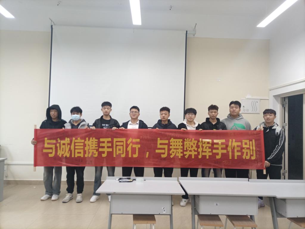 为树立创意设计学院全体学生的诚信意识,引导学生树立正确的考试观念,12月11日创意设计学院在德远楼E303教室举行考风考纪条幅签字活动。