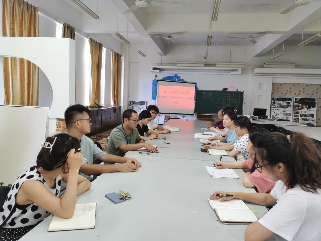 为深入学习领会新时代统战工作党内法规,6月22日,设计系教工党支部组织学习《中国共产党统一战线工作条例》,本次会议由设计系党支部书记田婧主持。