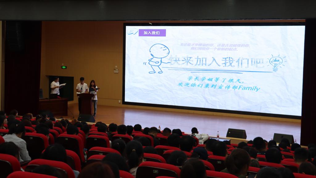 10月6日20:00,设计系分团委学生会于51206报告厅召开招新宣讲会,设计系全体新生参加,设计系分团委学生会书记龙城,新生辅导员周金悦、陈新雨出席宣讲会。