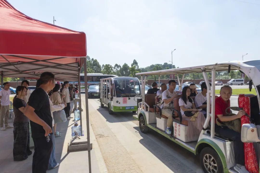 正午时分,烈日当空。党员志愿者们仍推着满载行李的推车,穿梭于接驳点和接驳车之间。
