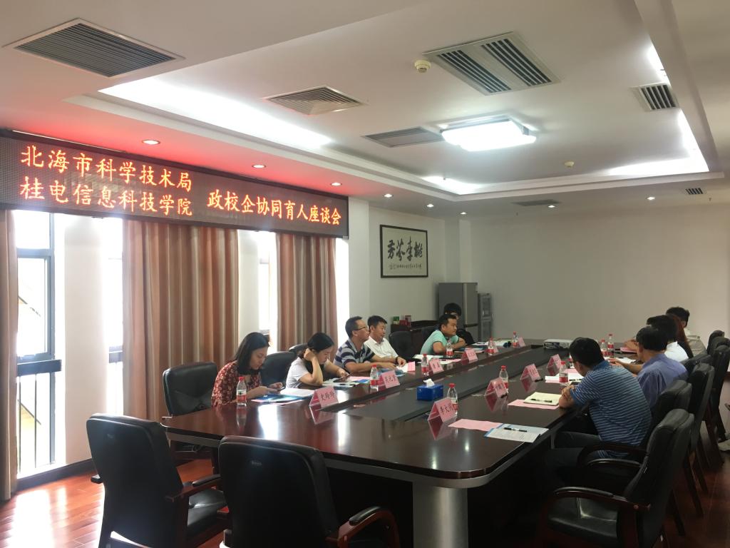 6月8日,北海市科技信息所所长唐磊及北海中电高科孵化器有限公司总经理王卫国一行6人到访必赢官网,学校党委副书记杨丹江在学校217会议室接待了来访客人,招生就业部、教务科技部、校团委、信息工程系等相关部门负责人及成员陪同一起交流座谈。