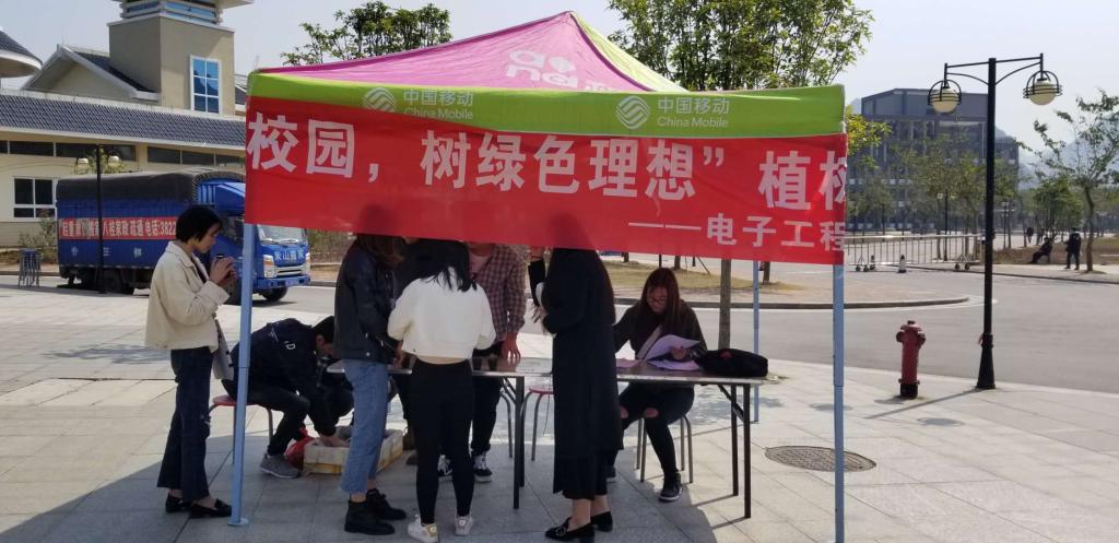 3月12日,电子工程系分团委学生会成员在第二食堂门口举办植树节公益活动,