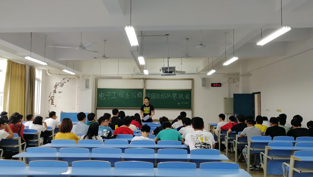 5月5日中午,电子工程系在32307教室召开学困生结对帮扶会,系分团委书记、2016级辅导员范恒祯主持会议,16级学生党员及学困生出席会议.