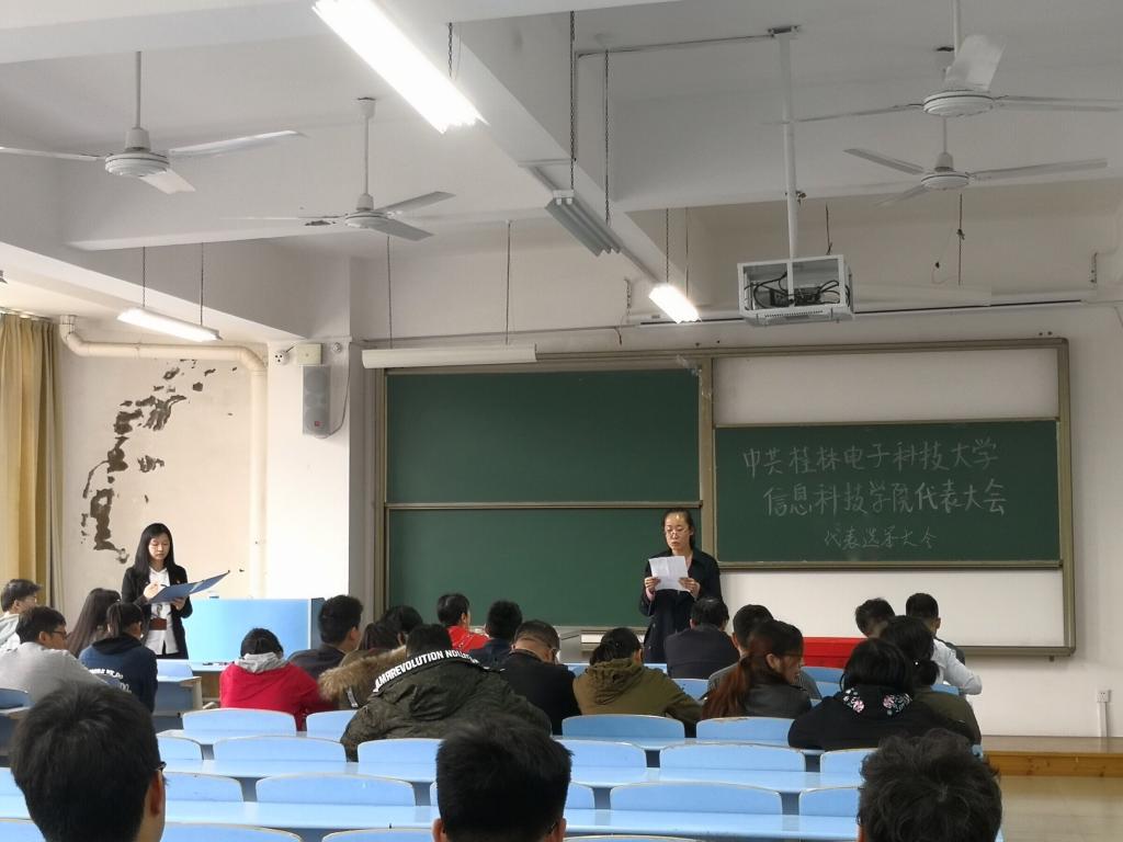 4月10日中午,电子工程系党总支在32307教室召开中共桂林电子科技大学信息科技学院代表大会代表选举大会,我系全体师生党员参加会议,会议由系党总支书记梁自珍主持。