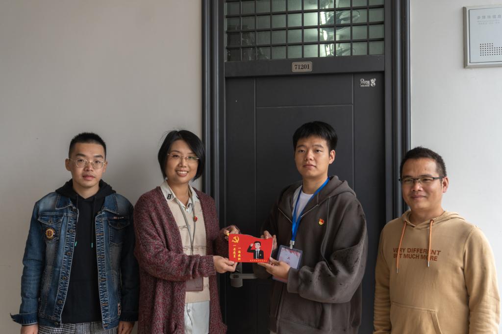 庄书记与各学生党支部书记带领队员们查看学生党员的宿舍情况,随后对他们进行授牌。庄书记强调,学生党员宿舍授牌不仅是一个仪式,更代表着一种责任、一种约束,它时刻提醒学生党员的言行举止要符合党员身份和要求。通过对党员宿舍授牌,有助于学生党员发挥先锋性,积极创建“学习氛围浓厚、环境文明整洁、舍友相处融洽”的宿舍风气。