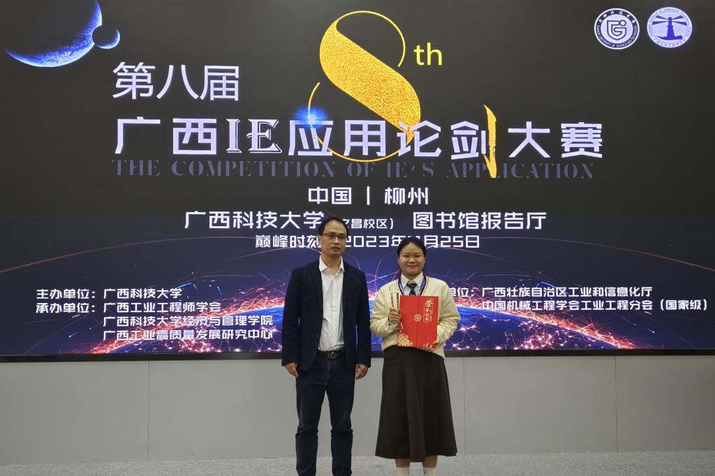 11月25日,由广西壮族自治区工业和信息化厅、中国机械工程学会工业工程分会(国家级)指导、广西科技大学主办的第八届广西IE(工业工程)应用论剑大赛在广西科技大学举行,本次论剑共有9个单位17个队报名参赛,企业参赛队来自于上汽通用五菱、柳州卷烟厂和广西玉柴铸造有限公司等知名企业,设置有工业工程专业的广西高校都参加了此次比赛,初审选出了12个队进入决赛。必赢官网是由周国美、韦欣欣、李家检、林程亮和徐远龙五名队员组成的队伍参赛,在指导老师胡洪林、蒋顺利两位老师的精心指导下积极备赛,经过激烈角逐最终在众多参赛队中脱颖而出,荣获高校组一等奖的优异成绩,充分展现了必赢官网工业工程专业学子的风采。