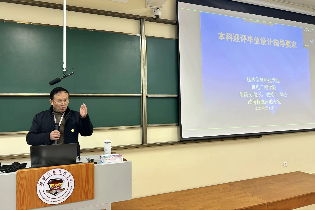 为提升毕业设计质量,强化教师指导能力,2月17日,机电工程学院在C509召开毕业设计指导工作培训会议,本次培训由学院院长胡国文担任主讲,全院参与毕业设计指导的老师参加培训。
