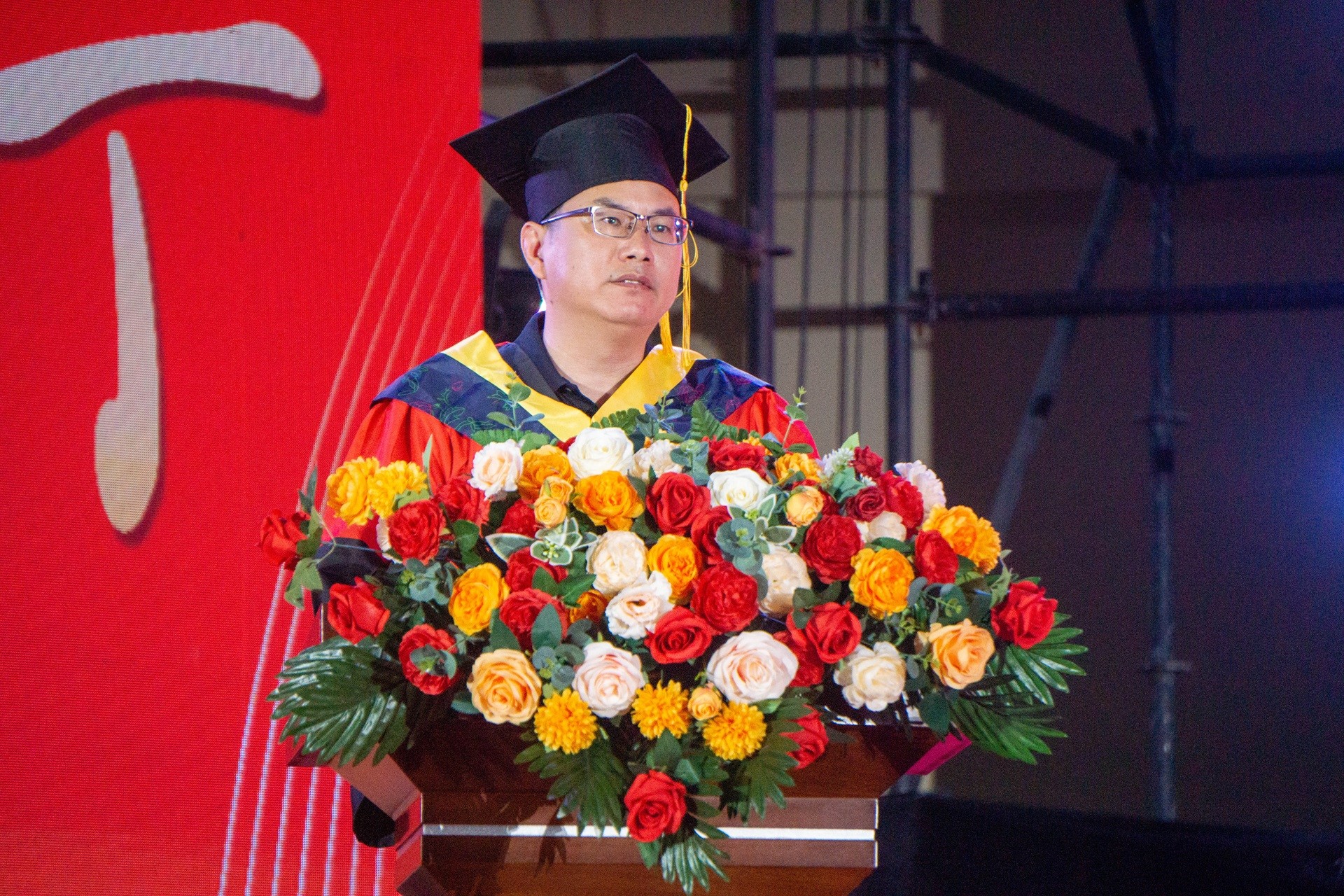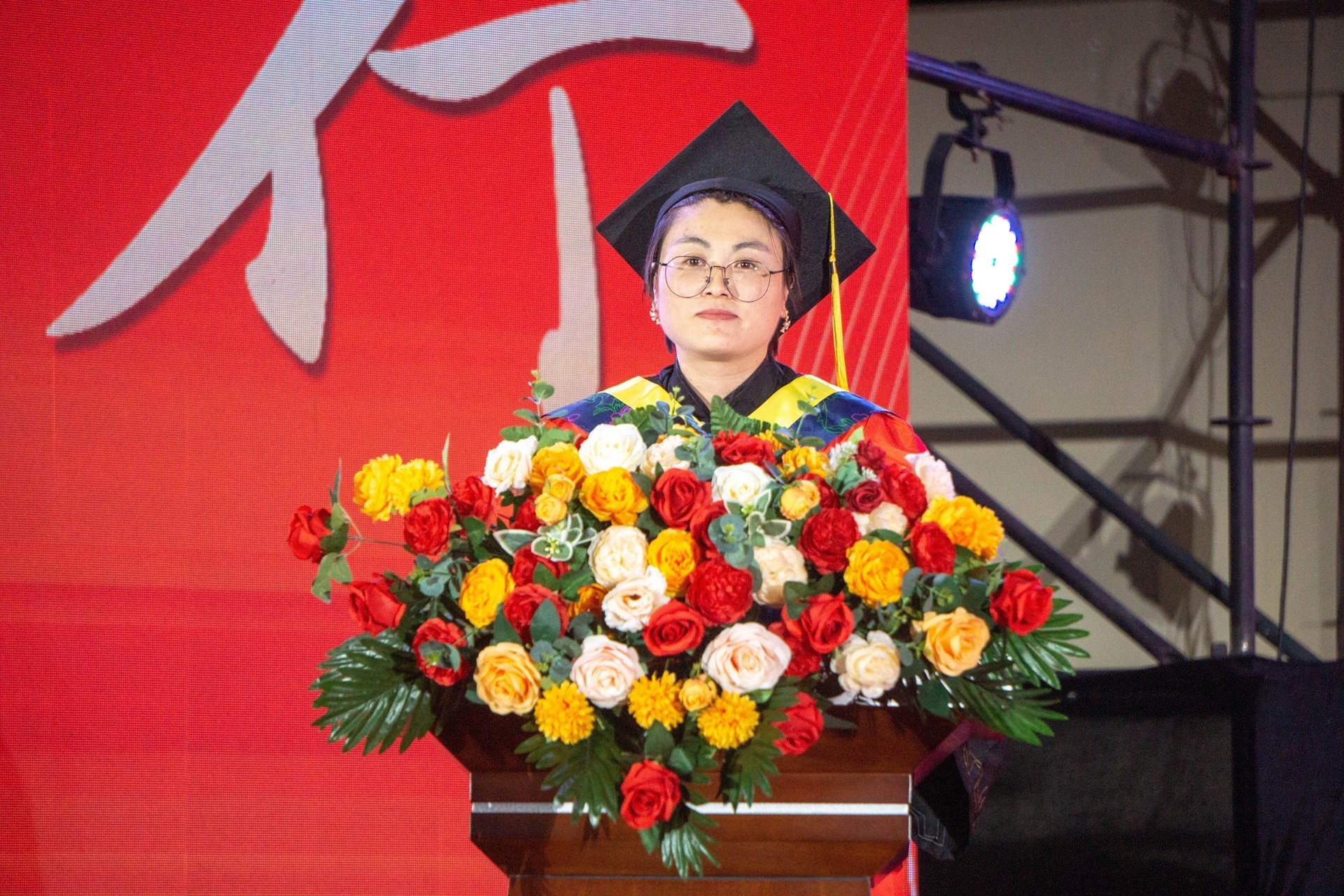 在2025届毕业典礼上,学生代表马志磊、教师代表贾丽、家长代表刘爱连分别就回顾求学历程、勉励勇担使命、致谢培育之恩共寄学子前程似锦。学院院长黄建灯代表学院向全体毕业生致以最热烈的祝贺。他深情寄语毕业生:“希望各位毕业生在工作中发扬‘以终为始、产出导向’的理念,注重实践能力和职业素养的提升,用所学知识为地方经济建设和社会发展贡献力量,成为掌握新一代信息技术的优秀人才。”