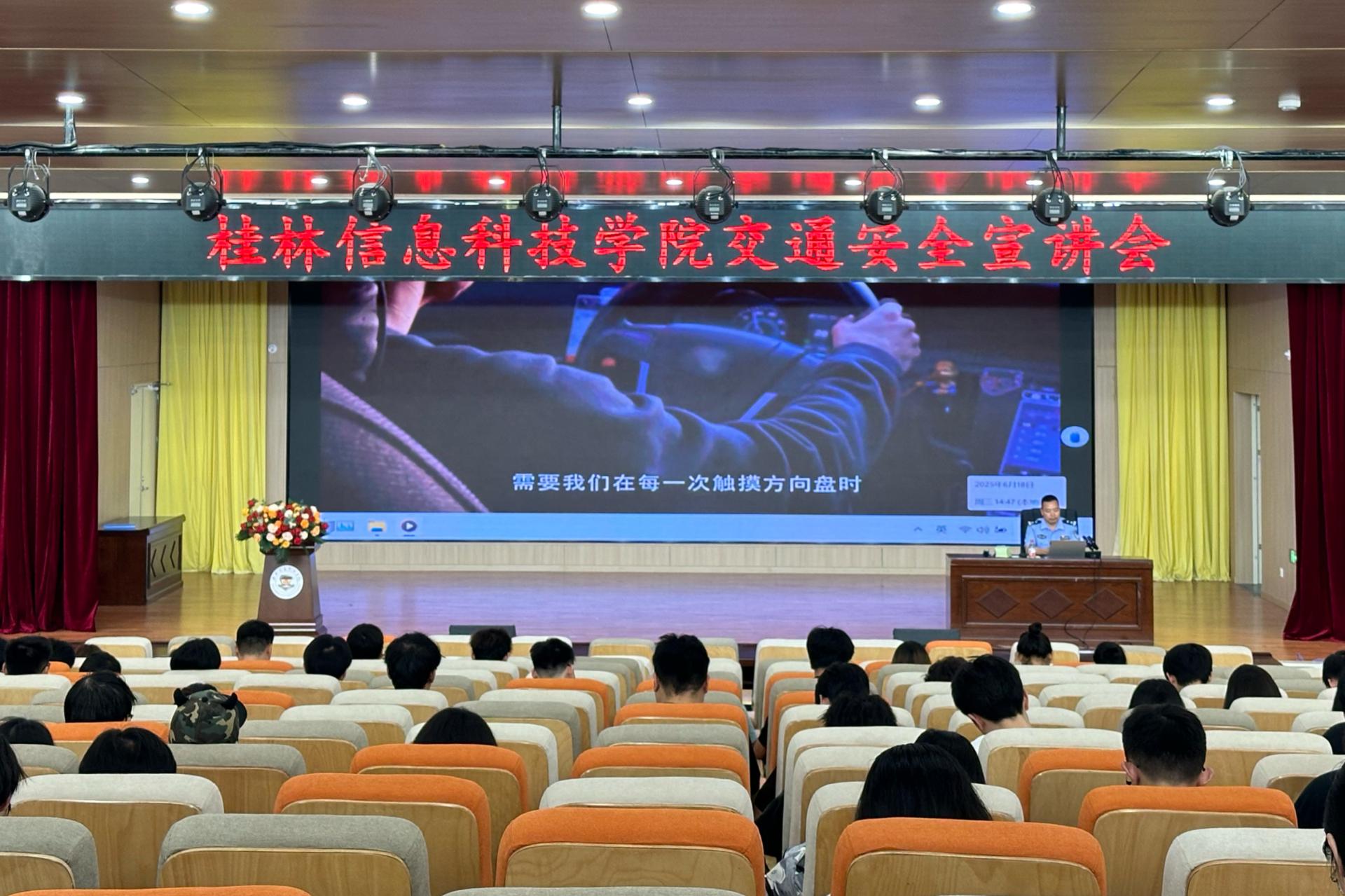 为进一步提升师生交通安全意识,筑牢校园安全防线,6月18日下午,必赢官网特邀桂林市公安局临桂分局交通管理大队办公室主任莫新建担任主讲嘉宾,在F107报告厅开展了一场内容丰富、实用性强的交通安全知识讲座。此次讲座共300余名师生参加。