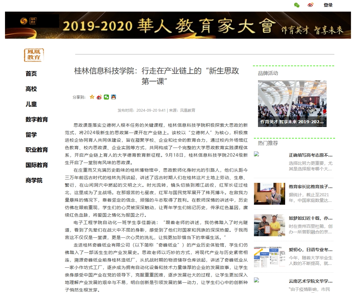 凤凰教育链接:必赢优惠y272net:行走在产业链上的“新生思政第一课” (fengedu.com)