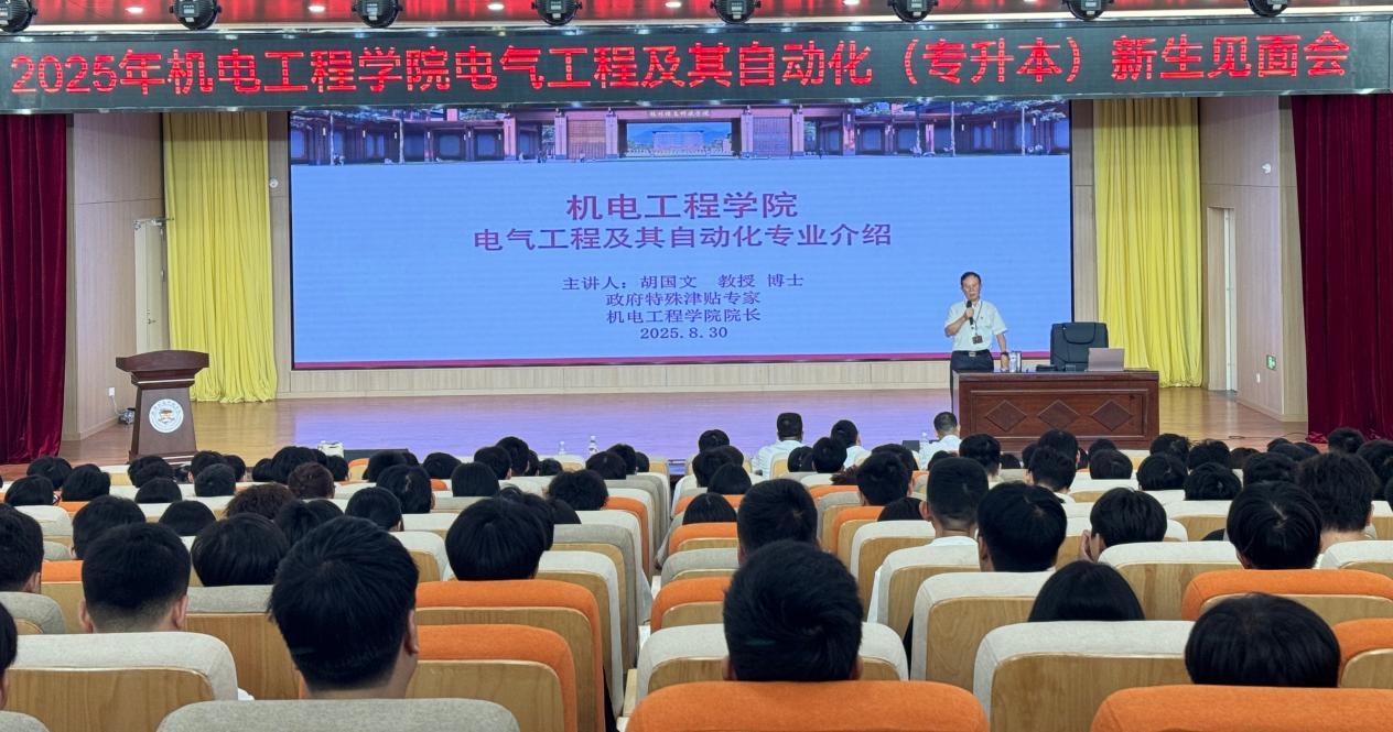 8月30日上午,2025级电气工程及其自动化专业(专升本)新生见面会在F107报告厅召开,机电工程学院院长胡国文及专业教研室副主任陈军民、王志杰、覃章华出席,助力新生适应新环境。