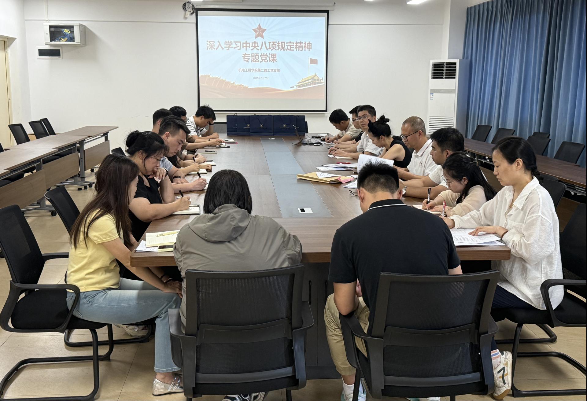 6月25日,机电工程学院第二教工党支部组织全体教师开展安全生产学习、深入贯彻中央八项规定精神学习教育等专题党会。