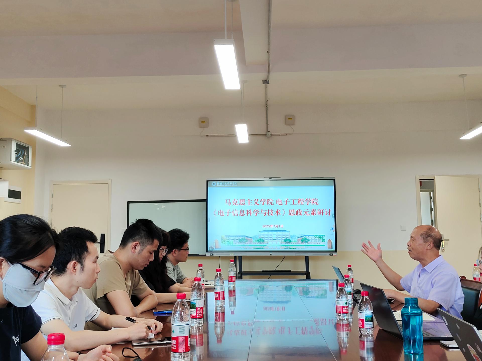 7月1日下午,马克思主义学院与电子工程学院在G610会议室联合开展课程思政建设研讨会。马克思主义学院院长邱启照及教师代表与电子工程学院蔡宇佳、谭昊民、梁晓雯共12位骨干教师共同参加了此次会议。