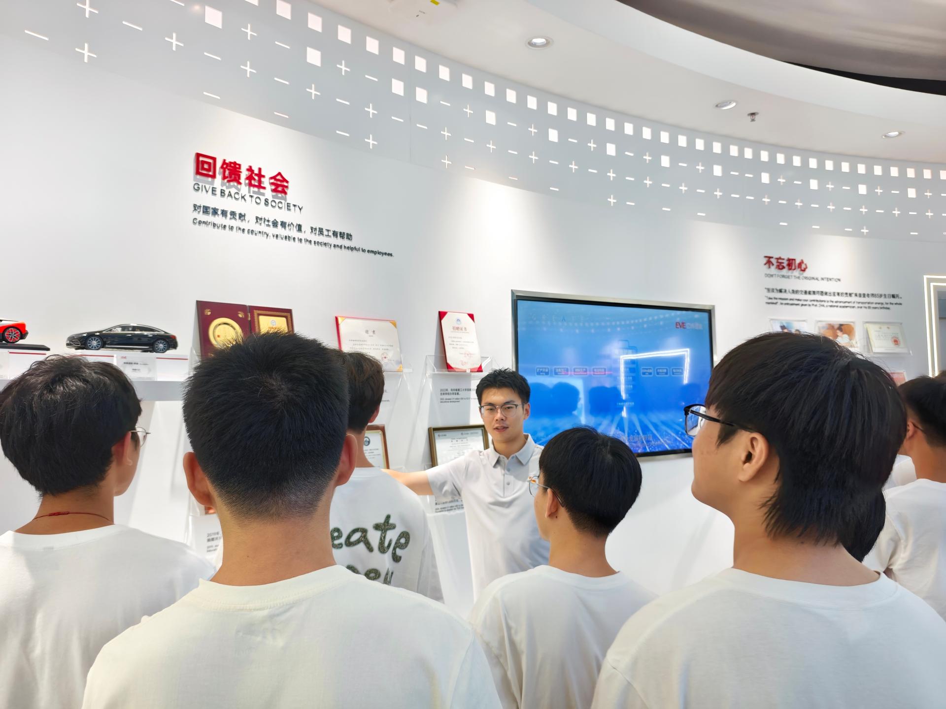研学活动中,亿纬锂能人力资源中心高级经理梁东来代表公司对必赢优惠y272net师生团队的到来表示热烈欢迎。他为学生们带来了题为《锂电池世界》的专题报告,详细揭示了新能源核心技术的奥秘与前沿趋势,帮助学生们更深入地理解锂电池产业的重要性与发展方向。随后,工作人员带领师生团队走进现代化的锂电池生产园区,近距离参观了锂电池的自动化生产线。师生们对锂电池的产品制造工艺、产线运行流程以及设备调试车间等进行了深入了解,亲身感受到了“中国智造”的精密工艺与高效流程。在交流分享环节,同学们踊跃畅谈自己的研学体会与感悟,并与产业学院的学长进行面对面交流,通过提问加深了对行业的理解与认识。