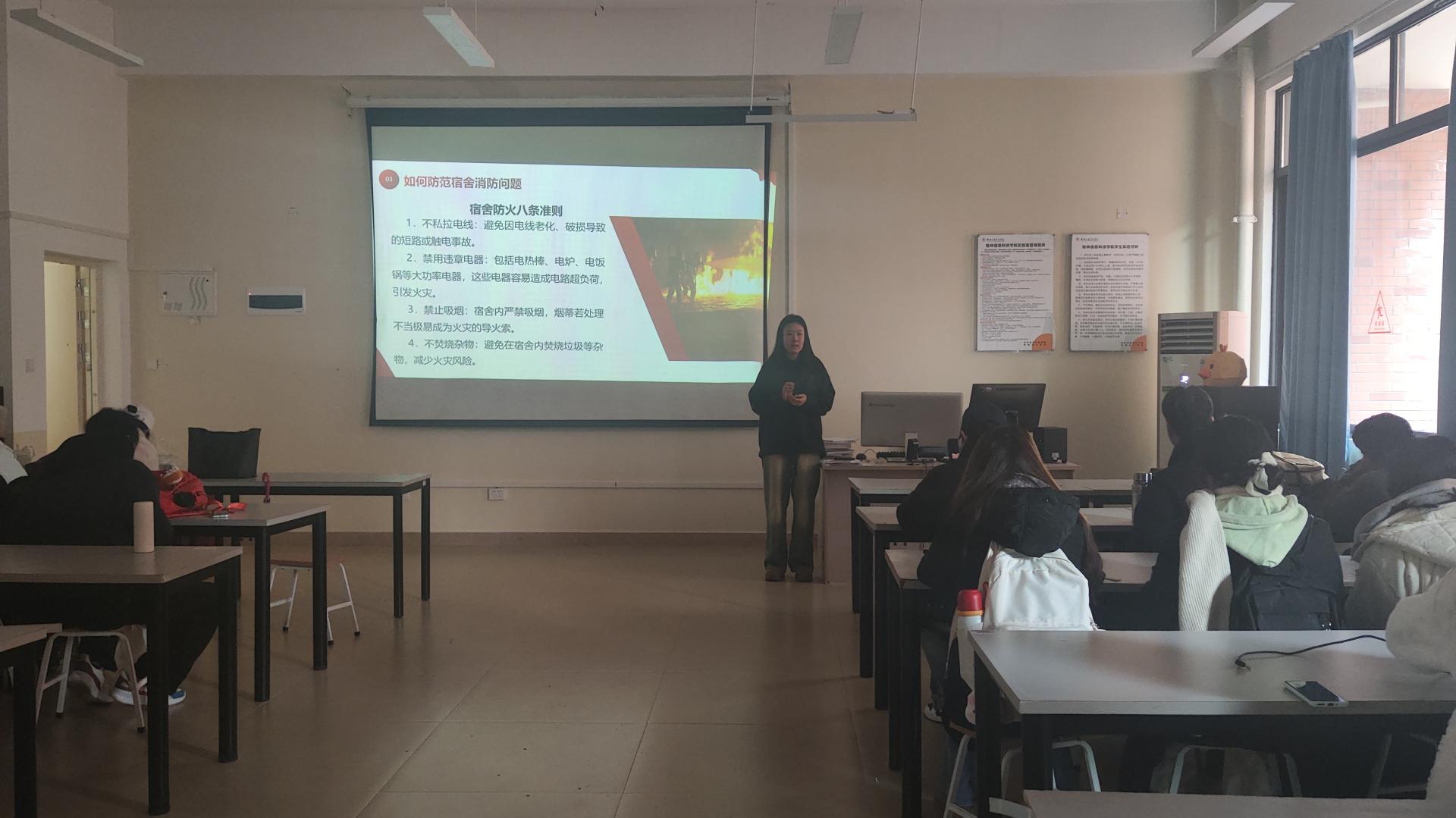 班会由班主任申航硕老师主持,全班同学积极参与。班会上,申航硕老师结合近年来的高校安全事故案例,详细讲解了校园安全、交通安全、消防安全、网络安全和心理健康等多个方面的知识,并强调了日常学习生活中可能遇到的安全隐患及预防措施。强调心理健康的重要性,分享压力管理和情绪调节的方法,鼓励学生遇到问题时及时寻求帮助,学会自我保护。