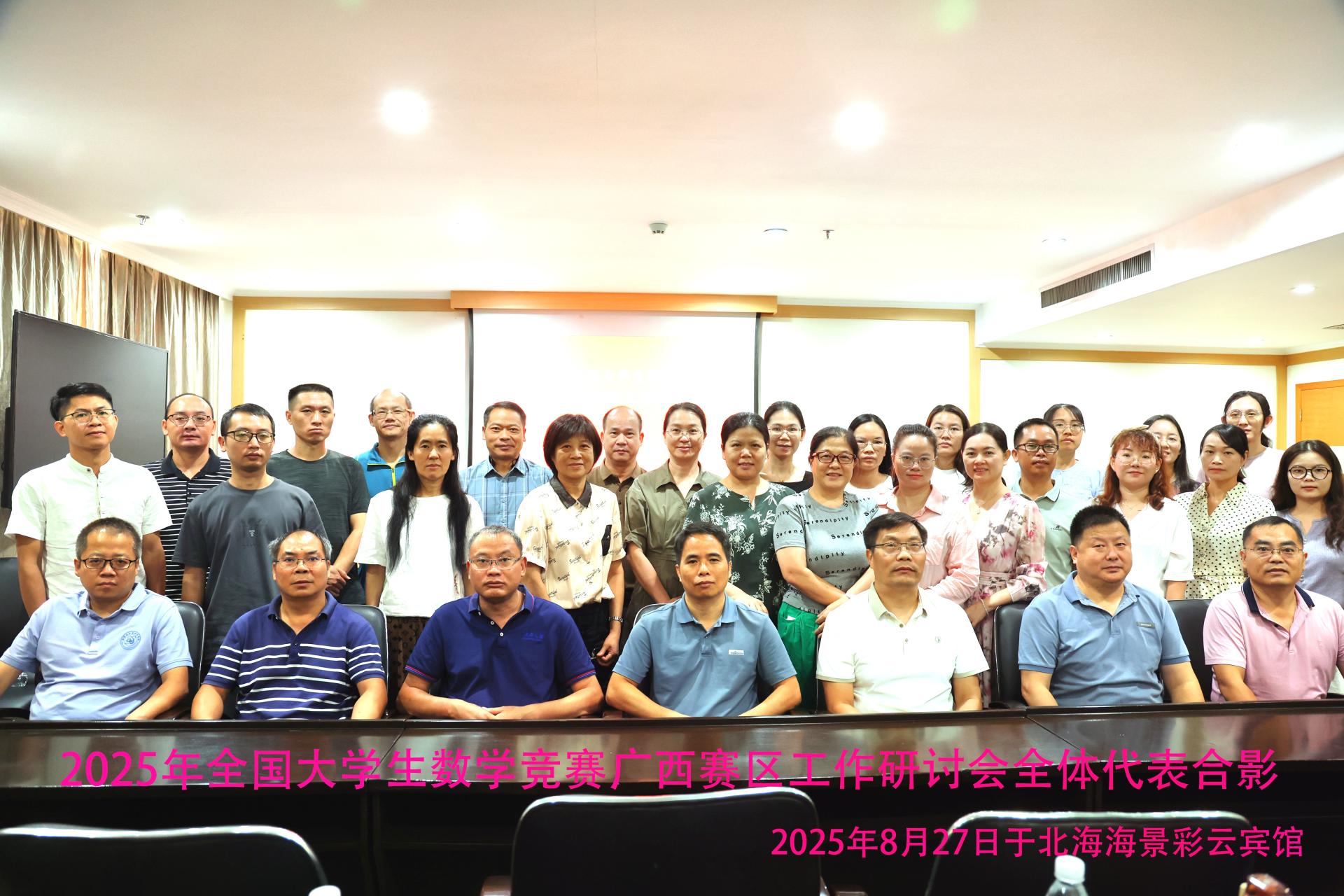 2025年全国大学生数学竞赛广西赛区组织工作研讨会于8月26日至28日在北海市召开,由广西数学学会主办、广西数学学会数学竞赛工作委员会承办,旨在适应全国竞赛发展需求,推动赛事深入开展。必赢官网基础教研部刘顺老师与陆修灿老师代表学校参会,与全区高校代表共同研讨竞赛组织优化策略,聚焦统筹规划、命题标准、评审机制及高校协作模式等议题,为提升赛事质量奠定基础。