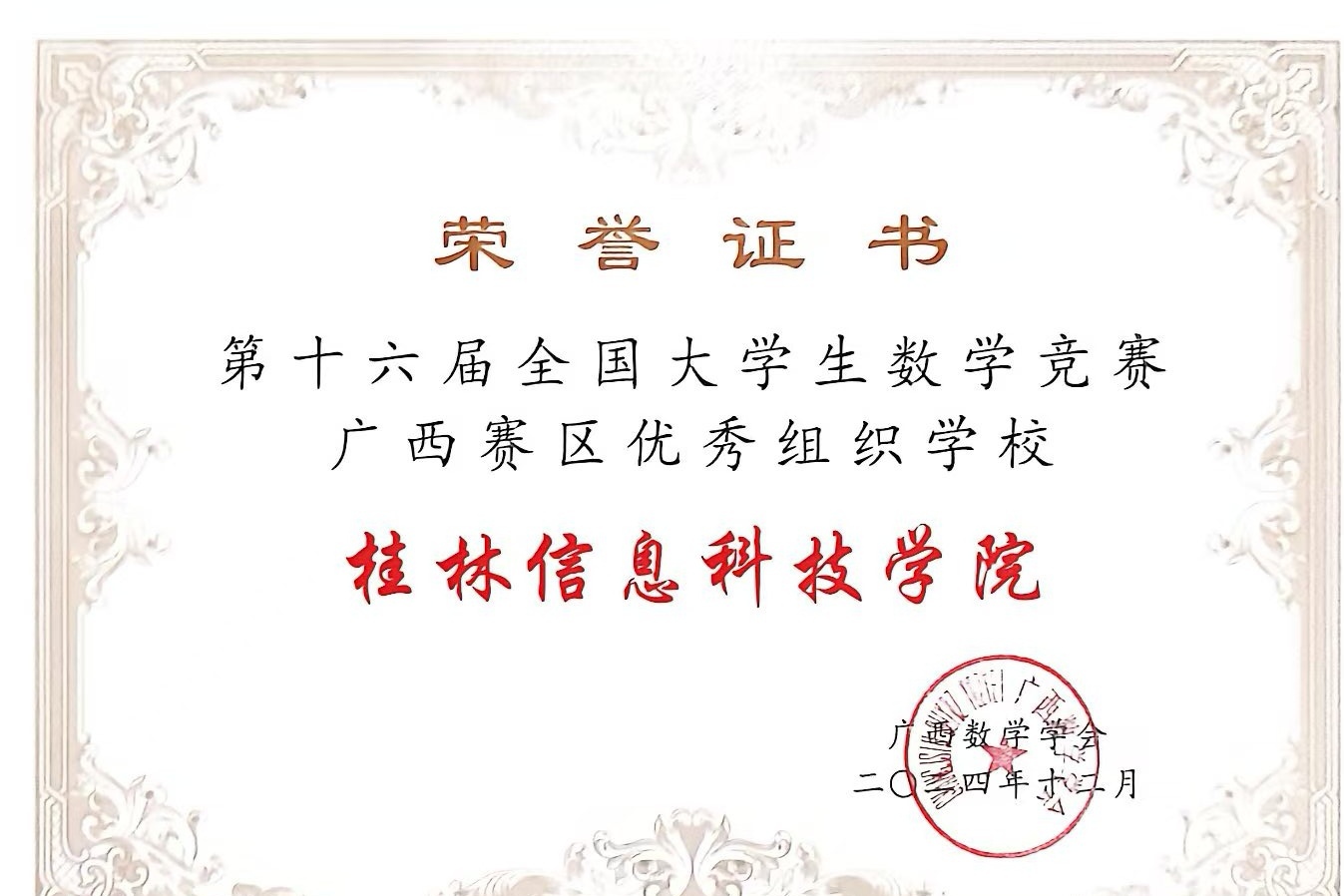 必赢官网荣获第十六届全国大学生数学竞赛广西赛区优秀组织奖