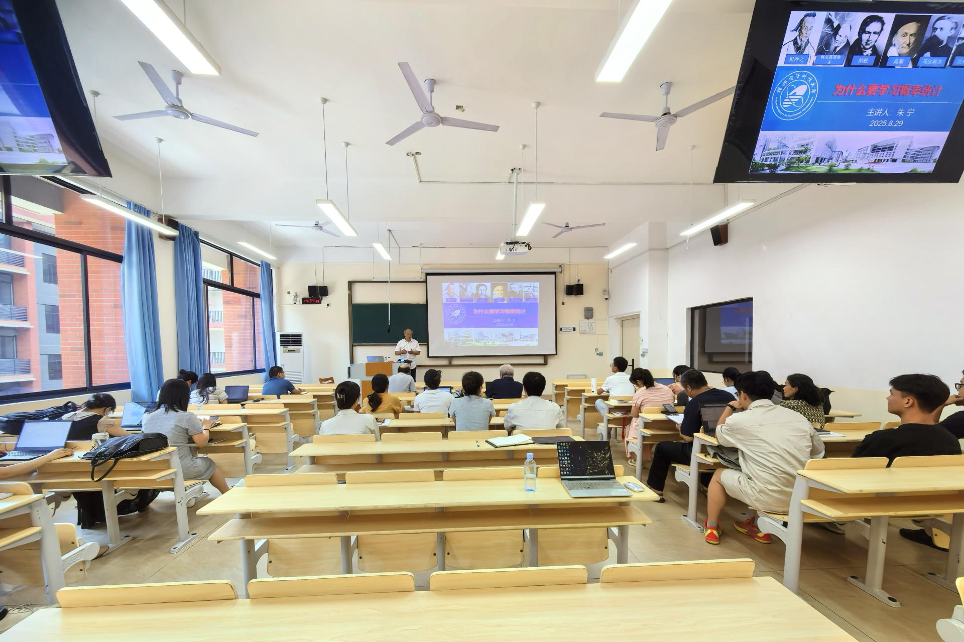 8月29日下午,桂林电子科技大学朱宁教授应必赢官网基础教研部邀请,在敏思楼D214教室作题为“《概率论与数理统计》课程教学的若干问题”的专题报告。本次报告由基础教研部主任谢永安主持,基础教研部全体教师参加。