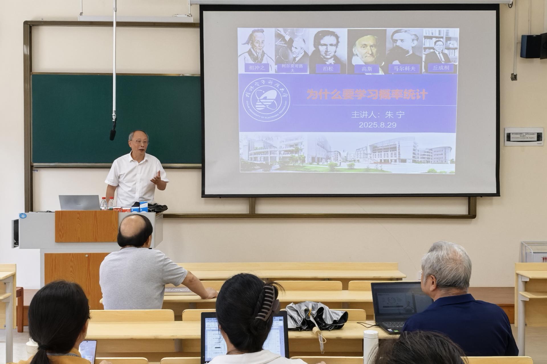 报告中,朱宁教授围绕《概率论与数理统计》课程教学的核心问题展开深入探讨。他从“为什么学习概率”“什么是概率”等基础概念切入,系统梳理了课程教学的关键脉络,涵盖随机变量及其分布、数学期望及其性质、大数定律和中心极限定理、数理统计及其统计推断等六大模块。结合自身丰富的教学实践,朱宁教授分享了教学方法的优化经验,强调通过案例教学与理论结合,帮助学生理解抽象概念的实际应用价值。