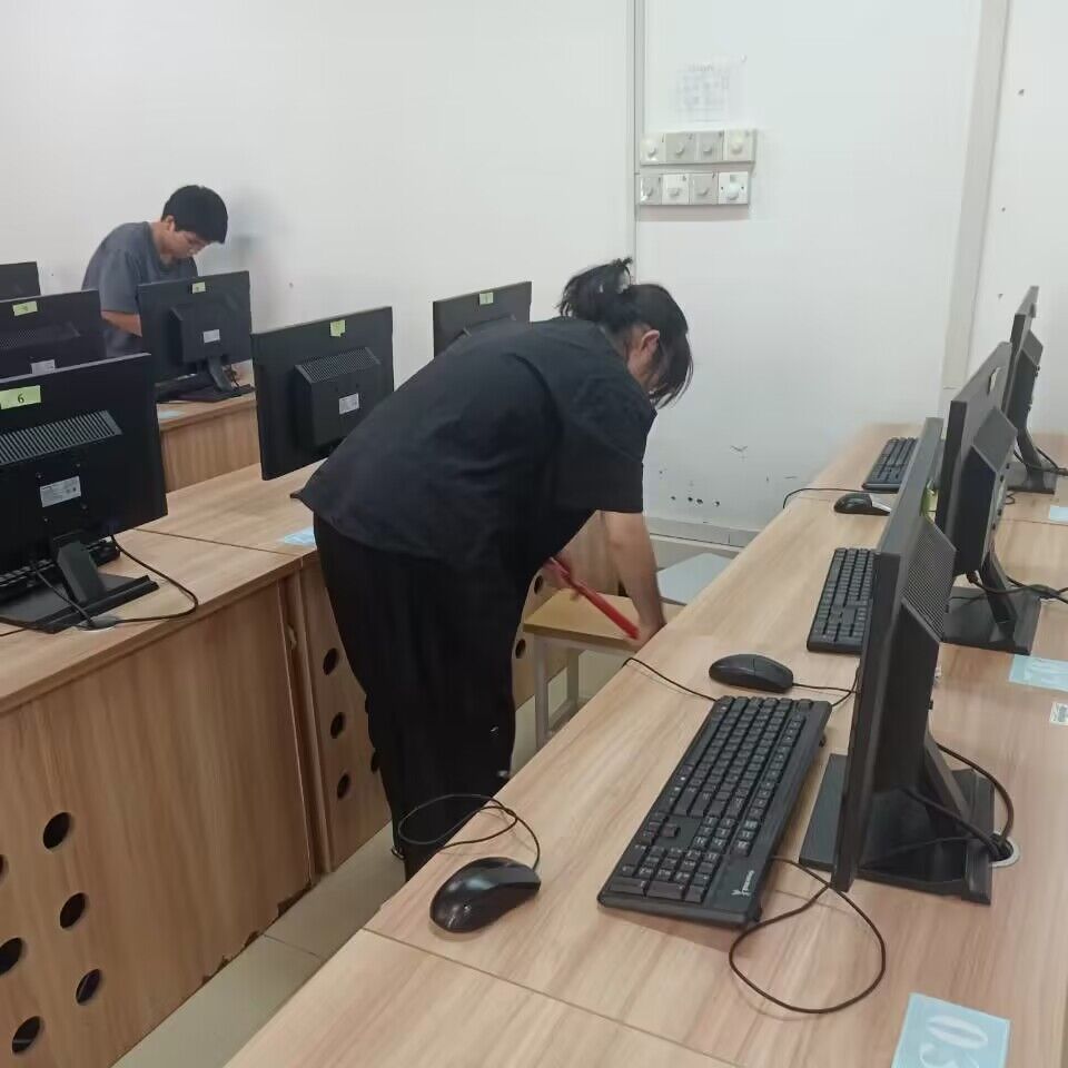 同学们共分为了8个批次分别开展活动,摆放图书、擦拭电脑、清扫教室、摆放桌椅,分工明确,眼里充满干劲,将实验室、图书馆打扫的干干净净。此次志愿活动进一步体现了我院学子的奉献精神,为美化校园环境、提升学生学习氛围贡献了力量,获得了老师及同学的一致好评。